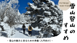 <11/15(土) 18:00~19:30 雪山のすすめ~雪山の魅力と登るための準備(入門向け)~>