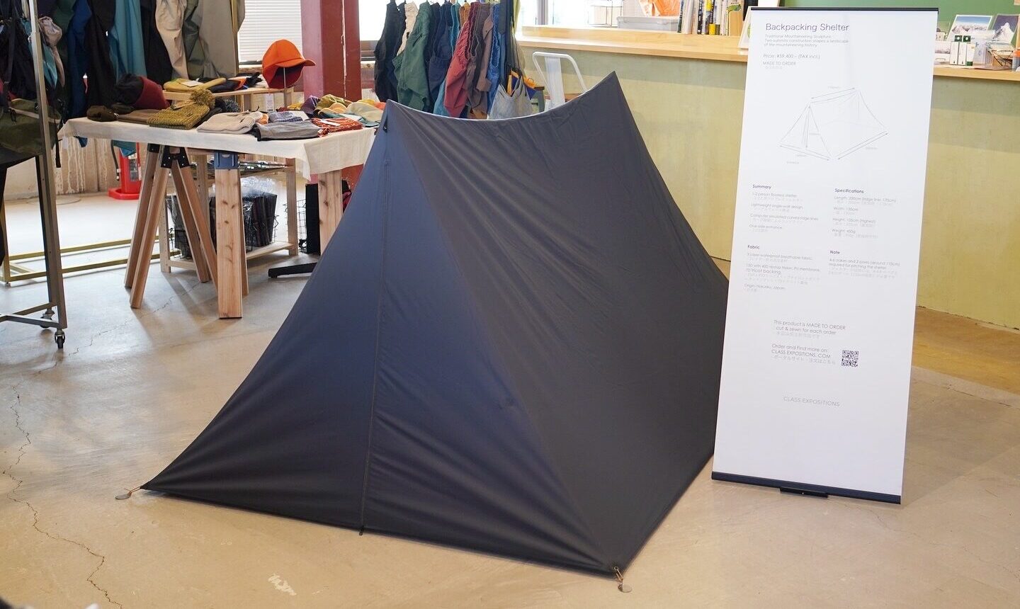 CLASS EXPOSITIONSの北村さんが手掛けるBackpacking Shelterを期間限定で店内に展示しています!
