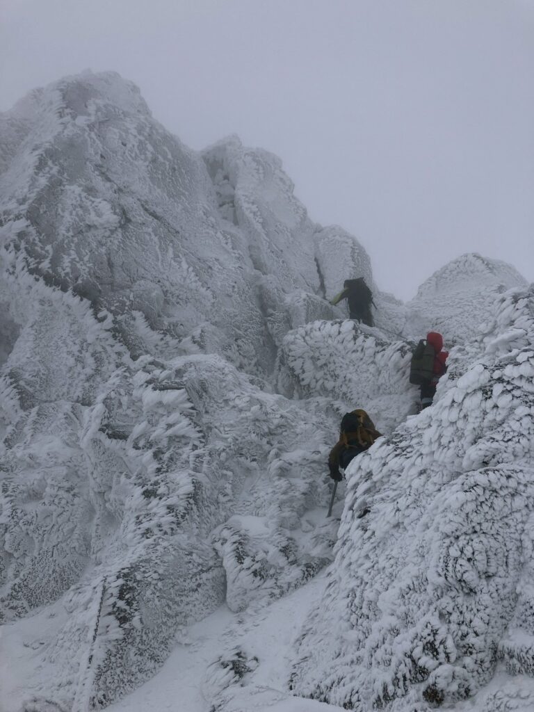 2日目も荒れ模様。気温は低く、風も強く、湿った重たい雪が積もり、同じルートでもコンディション次第で難易度がグッと変わる雪山の難しさを感じさせます。もちろん、天気が良いに越したことはないですが、悪いコンディションほど経験値が上がります。後半に帯同した妻は良い経験になったと言っていました。