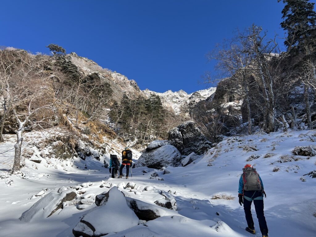 12/22-23の日程は2日間とも晴れ。参加された方の中には今シーズンから本格的な雪山登山を始めた方もいらっしゃいました。ガッツリ冬の八ヶ岳を体感していただけそうです。
