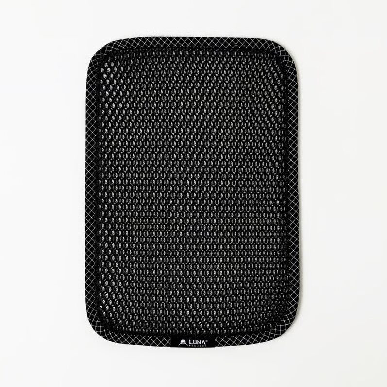背面メッシュを持たないULバックパックに装着することで、高い通気性とクッション性を確保してくれます。LUNA PROJECT用にカスタマイズされたエアメッシュはモノフィラメント(1本繊維)のポリエステルで出来ているため、ハリと強度があり圧縮されても崩れること無く形状を維持します。