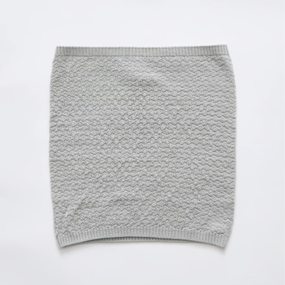 スーパーエクストラファインメリノウールとBRING Material™の再生ポリエステルを70:30の割合で配合したニットの腹巻き。