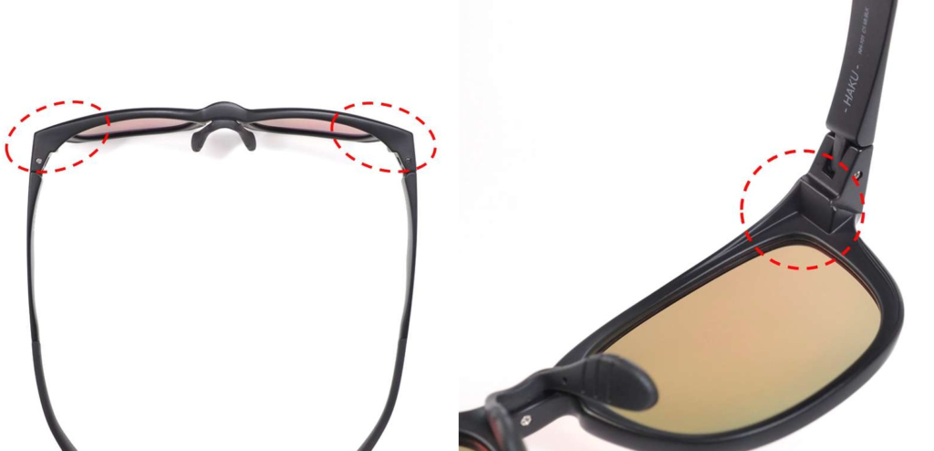つると鼻あては曲げられる素材を使っているため、細かいフィット感の調整が可能です。合わないサングラスは長時間着用していると耳や鼻が痛くなるので、嬉しい機能です。
