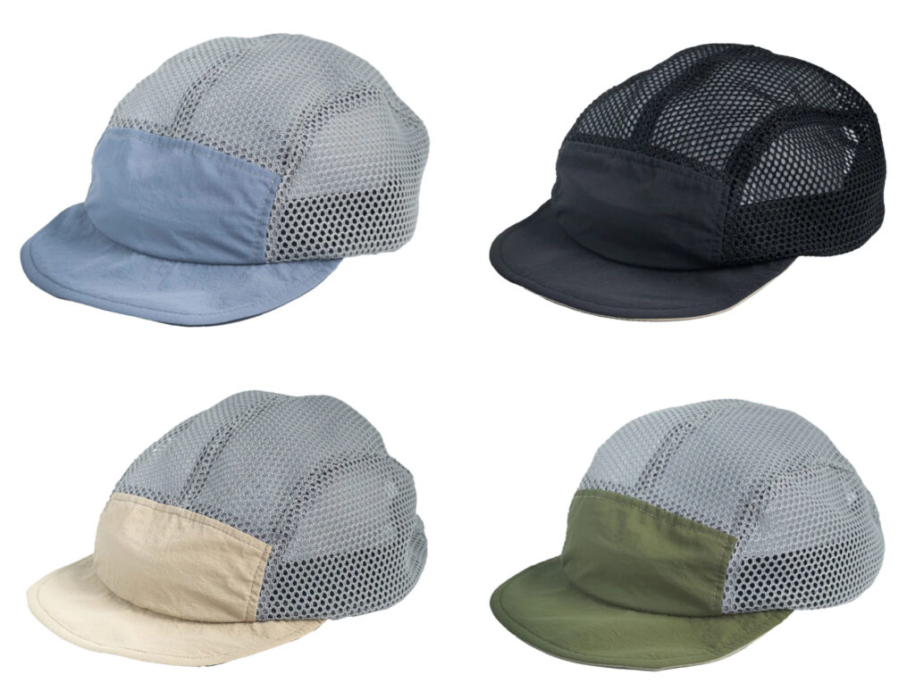 フロントパネル以外にメッシュ素材を使用したキャップ。トレイルランニング等極限まで熱の籠もりを抑えたい激しいアクティビティに最適。ヘルメットの下に着用するのもオススメです。