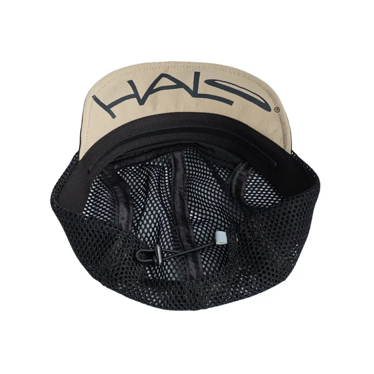 ツバには針金が入っていて、ツバを反り上げることが可能で、視界を良好に保つことができます。 裏側にはHALOのロゴが湾曲して配置されており、ツバを立ち上げると前から見えるデザインになっています。