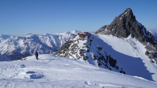 しばらく登って登山道を逸れると南壁が姿を表し、そこから壁沿いをしばらくトラバース。