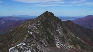 高座山、オザス山、ヨウビ山と超えていく細尾根はちょっとした岩場があったりアップダウンがあったり飽きずに歩けます。途中で杓子山の駐車場から登る林道と合流し、杓子山までは尾根をつづら折れに上がっていく道。今回はゼロシューズのメサトレイル2を履いていたので、ふくらはぎに厳しい登りでしたがそれもまた心地よいです。