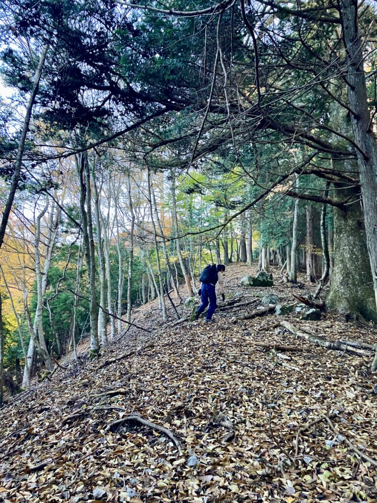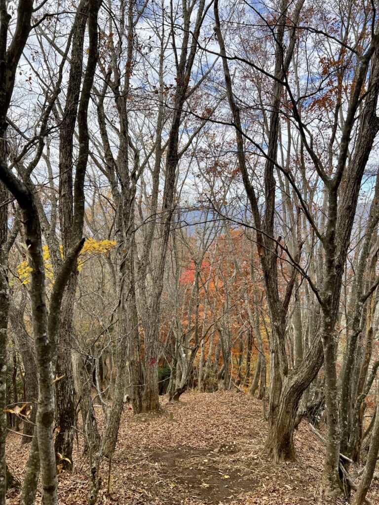 下山はパノラマルートを歩いたのですが、ツルツルな土と落ち葉の急な斜面が続き、なかなかにスリリングでした。