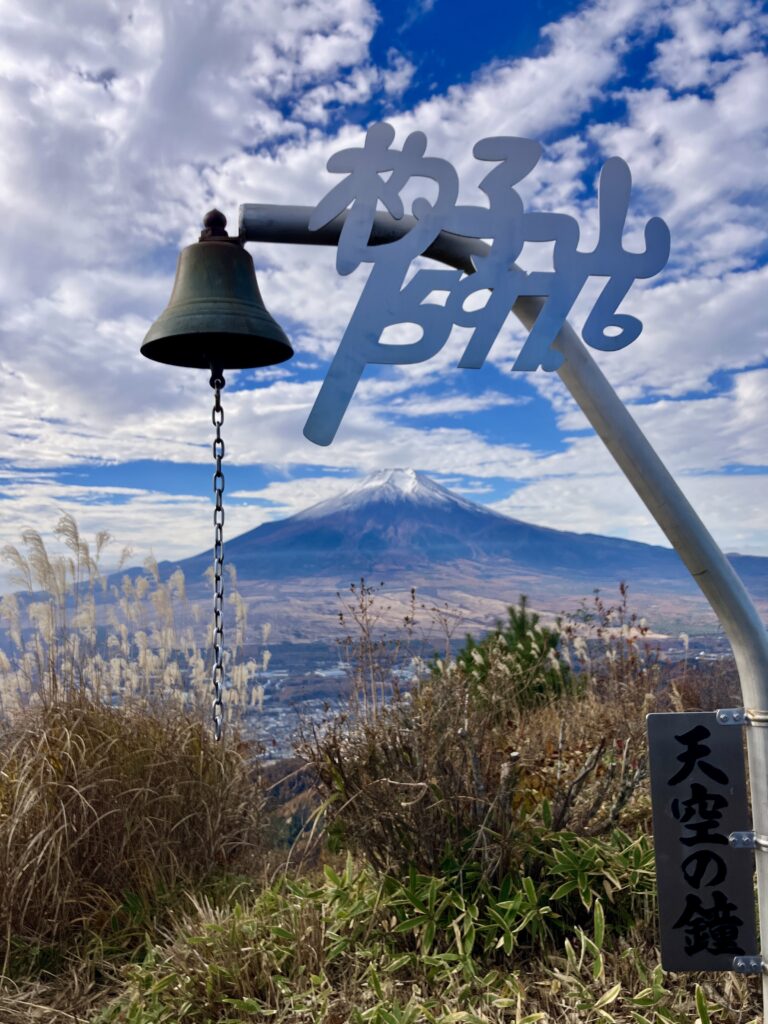 今日最後の登りを終えて、山頂にてお決まりの鐘を鳴らして軽く休憩。とても天気が良かったので、おにぎりを食べているうちに背中の汗もすっかり乾いてしまいました。