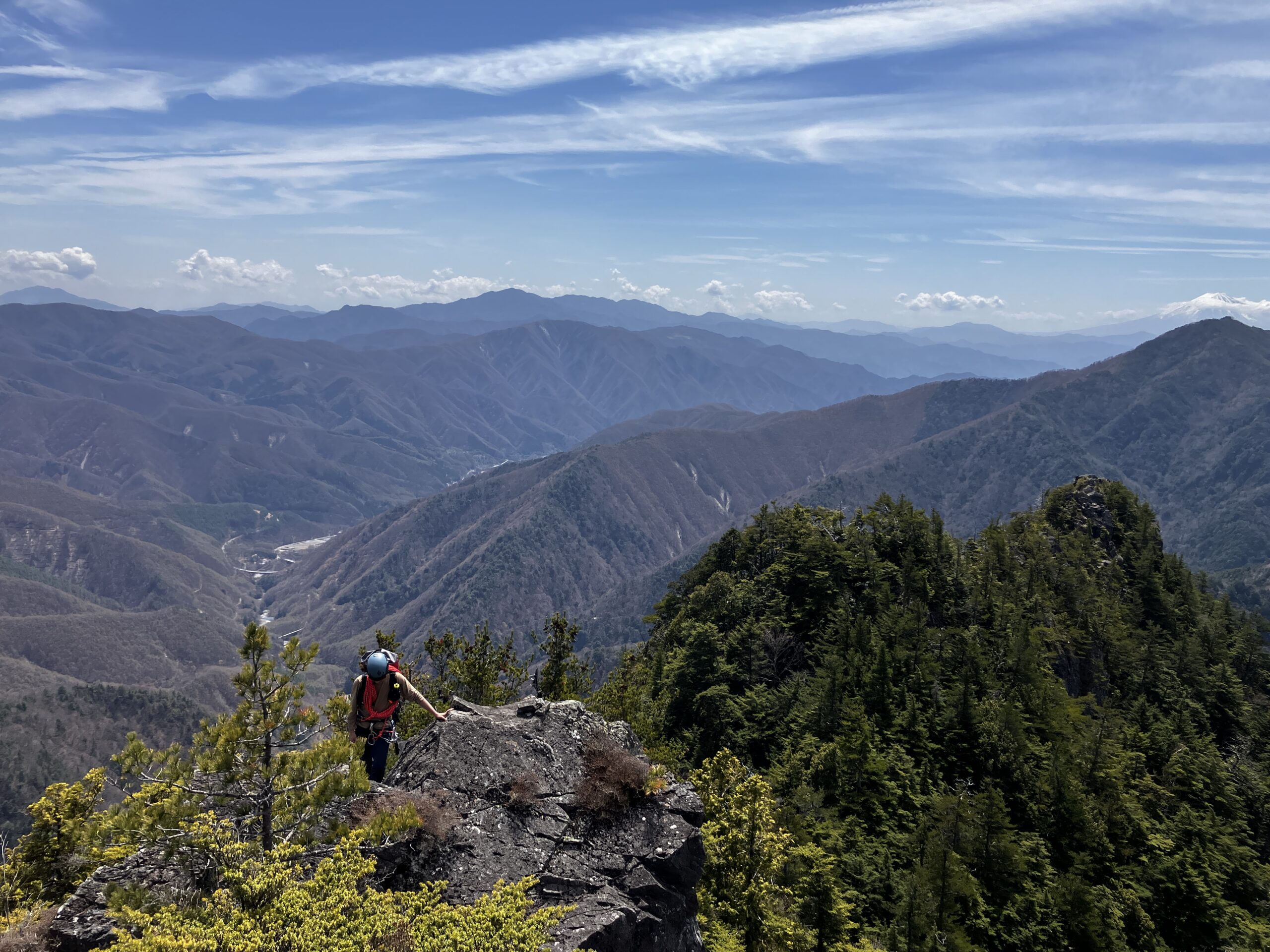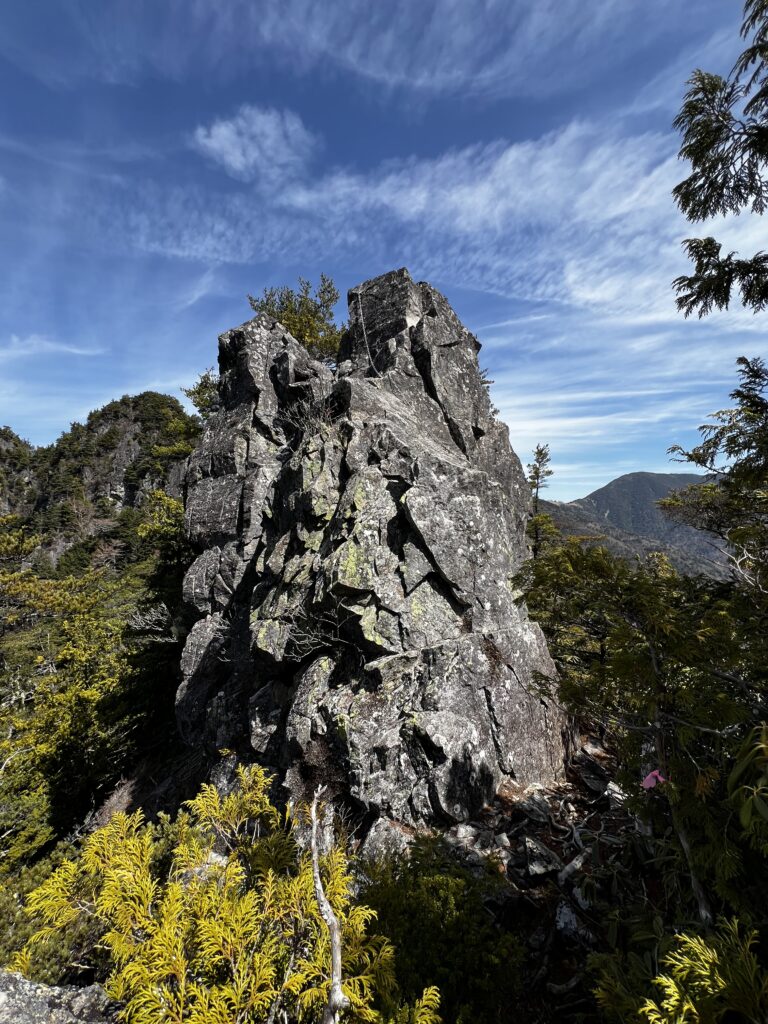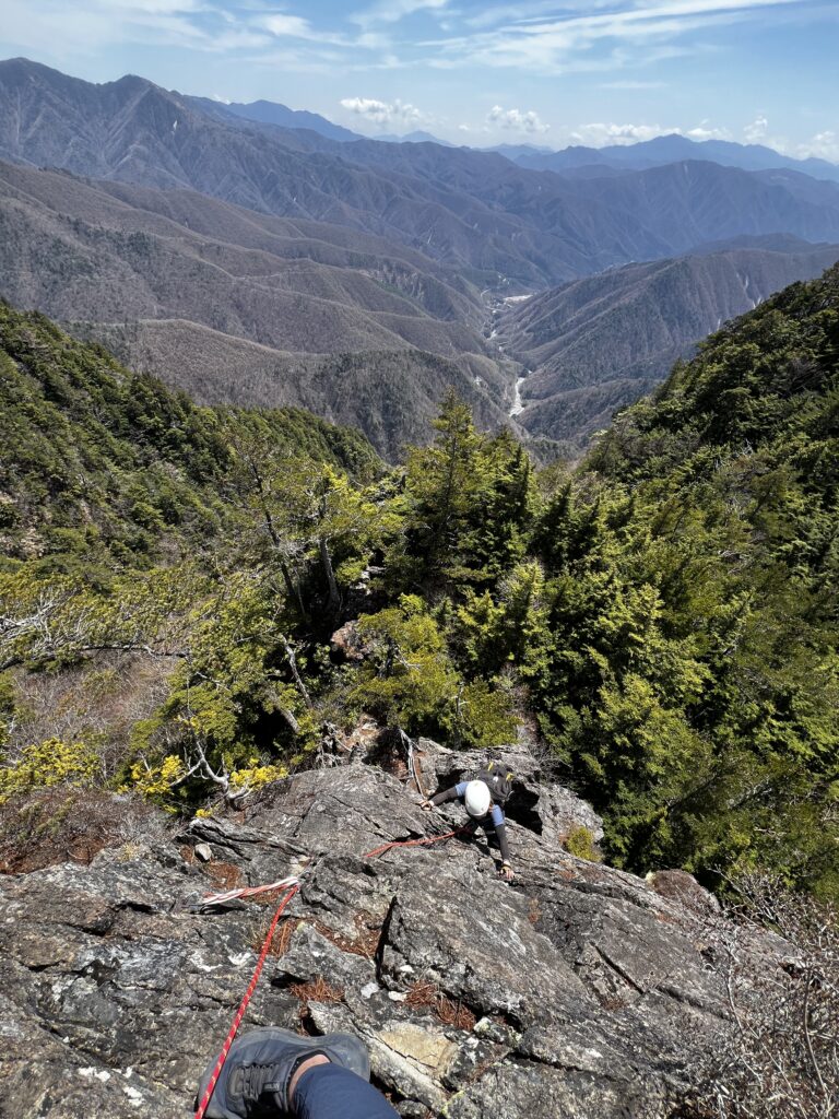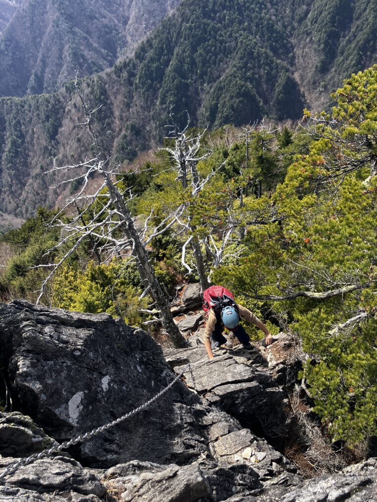 そんな景色に癒されながら進むと第二岩峰が登場。先程より少し難易度が上がります。もちろん我々は鎖を使わない縛りで登っていきます。正面に掴みやすい大きなフレークがあるのですが、剥がれそうで少し怖かったです。