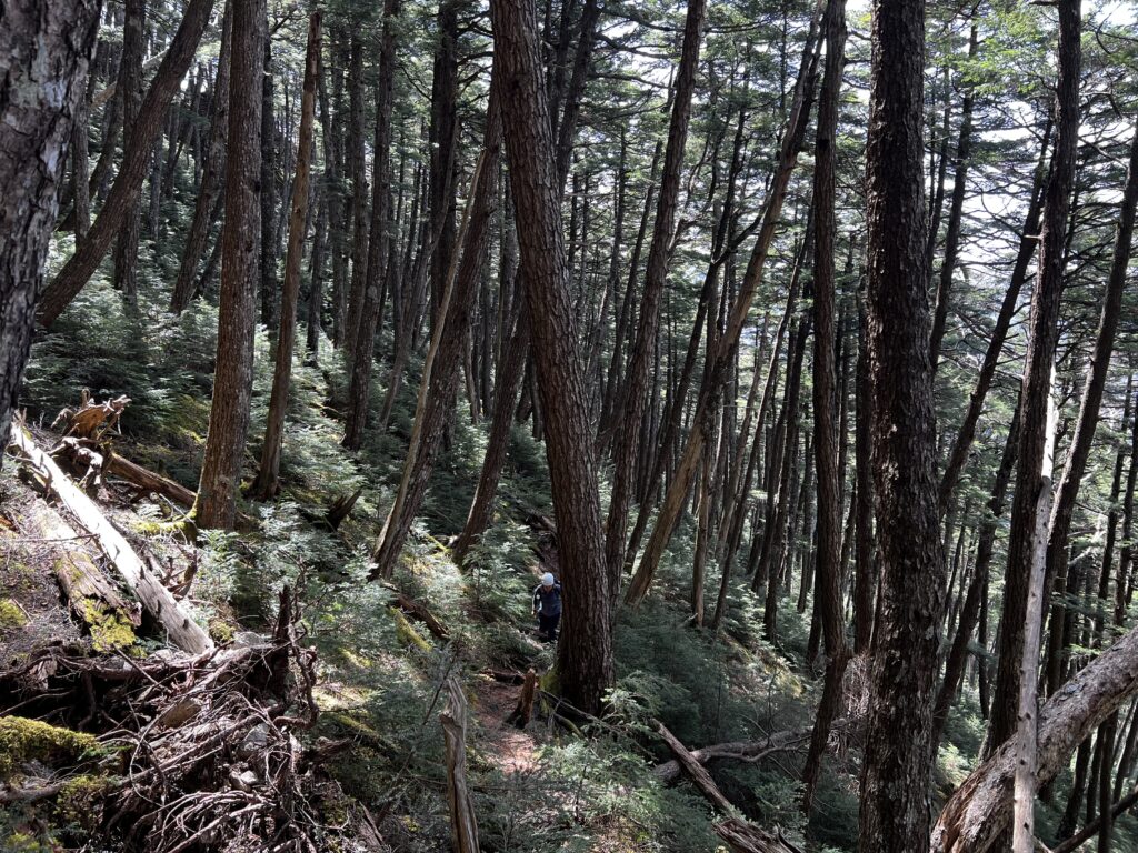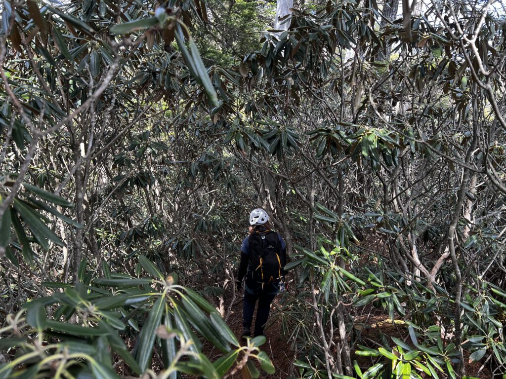 岩峰群から山頂まではシャクナゲが生い茂るトンネルを歩きます。とにかくすごいシャクナゲの数なので、花が咲く時期に来るのも良さそうですね。