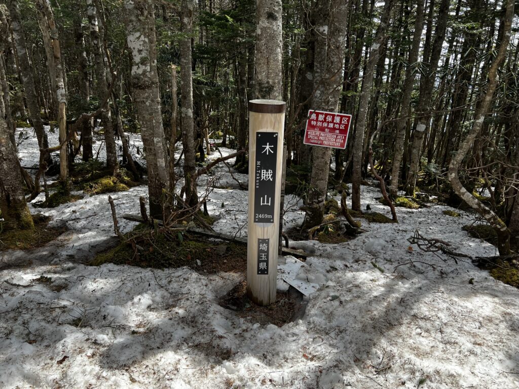 2時間程で木賊山山頂に到着。だいぶ標高が上がったこともあり、まだ残雪がありました。