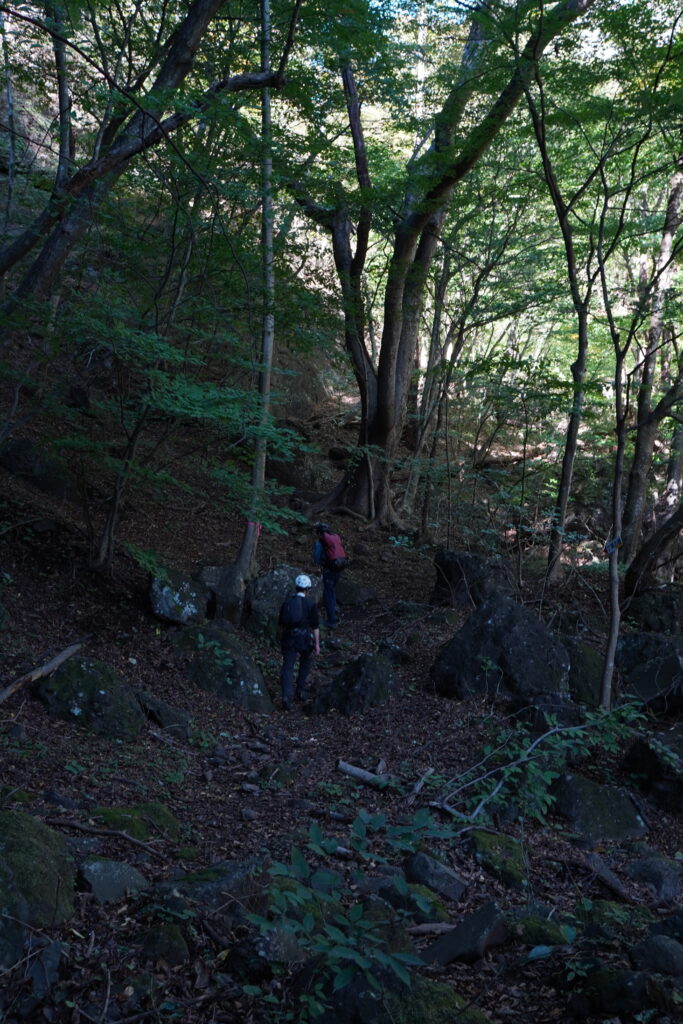 三方境からは斜面をトラバースしていく道で、尾根と沢が交互に登山道に現れる感じが懐かしの奥秩父に帰ってきたような気持ちになりました。日も短くなってきて樹林帯に入るとぐっと暗くなるので、早足気味に降りました。