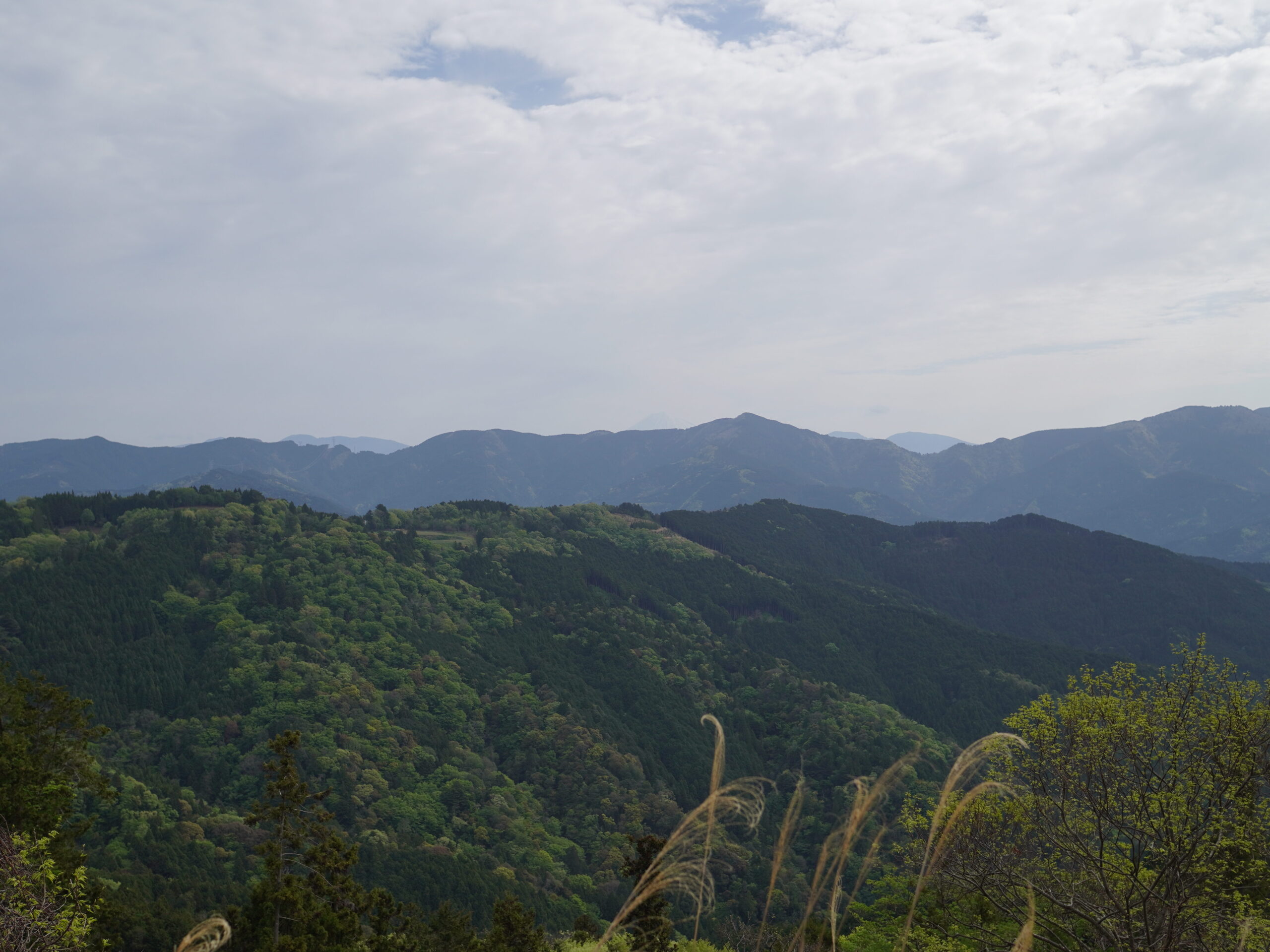 1つ目のピークの沢口山頂上に設けられたベンチで、大無間周辺の山々を眺めながら休憩した。グミを食べようとしたら真後ろに大きな鷲が現れた。音もなく近寄ってくる様はまさにハンター。不意打ちで振り返ってしまったようで慌てて飛び去っていった。