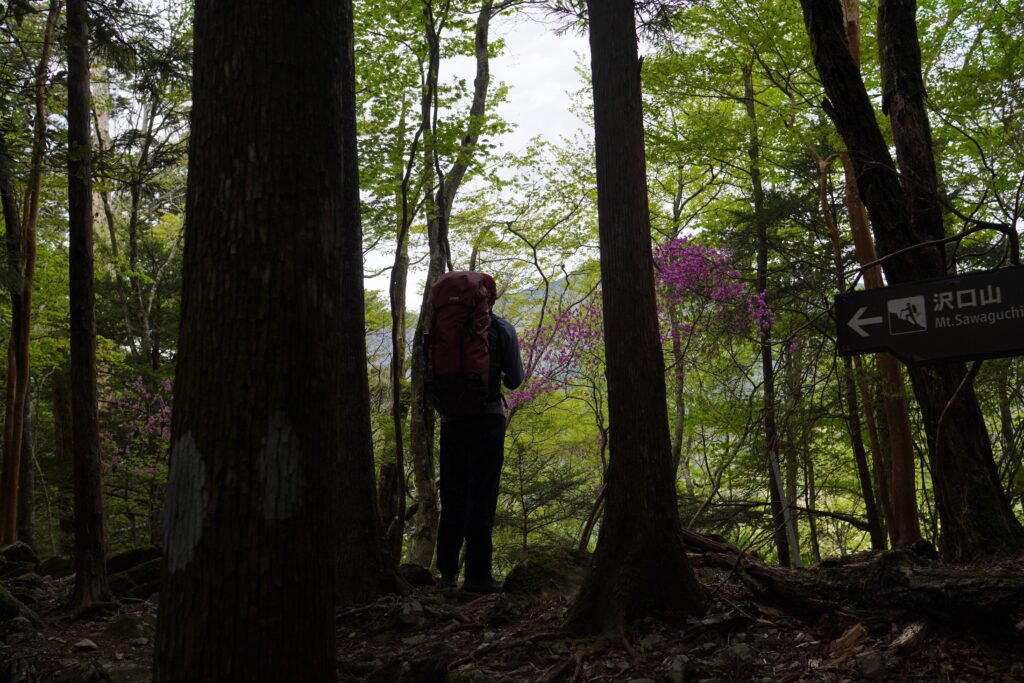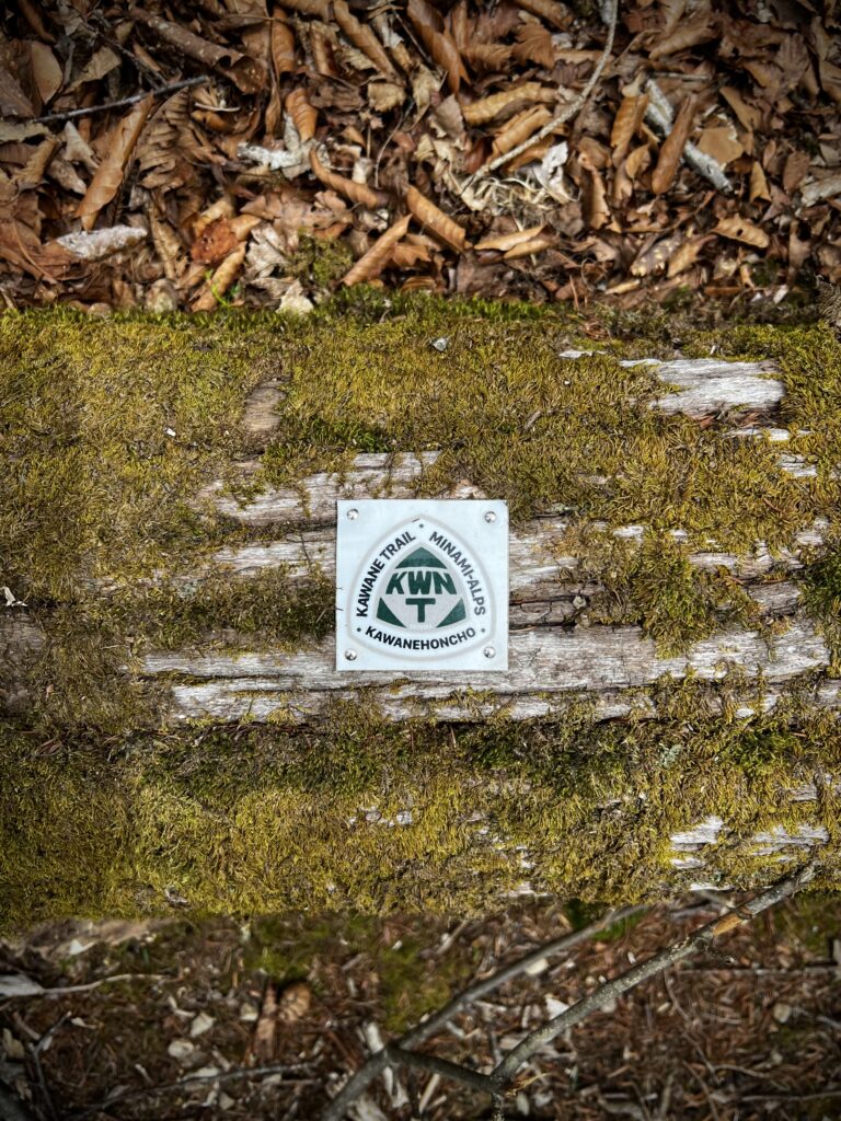 一日目・二日目に歩く登山道は「川根トレイル」の一部にもなっている。川根トレイルは、川根本町に点在する集落をトレイルでつなぎ、最終的には町内全域を結ぶロングトレイルを整備する取り組みだ。所々にそのトレイルを示す目印が見られる。
