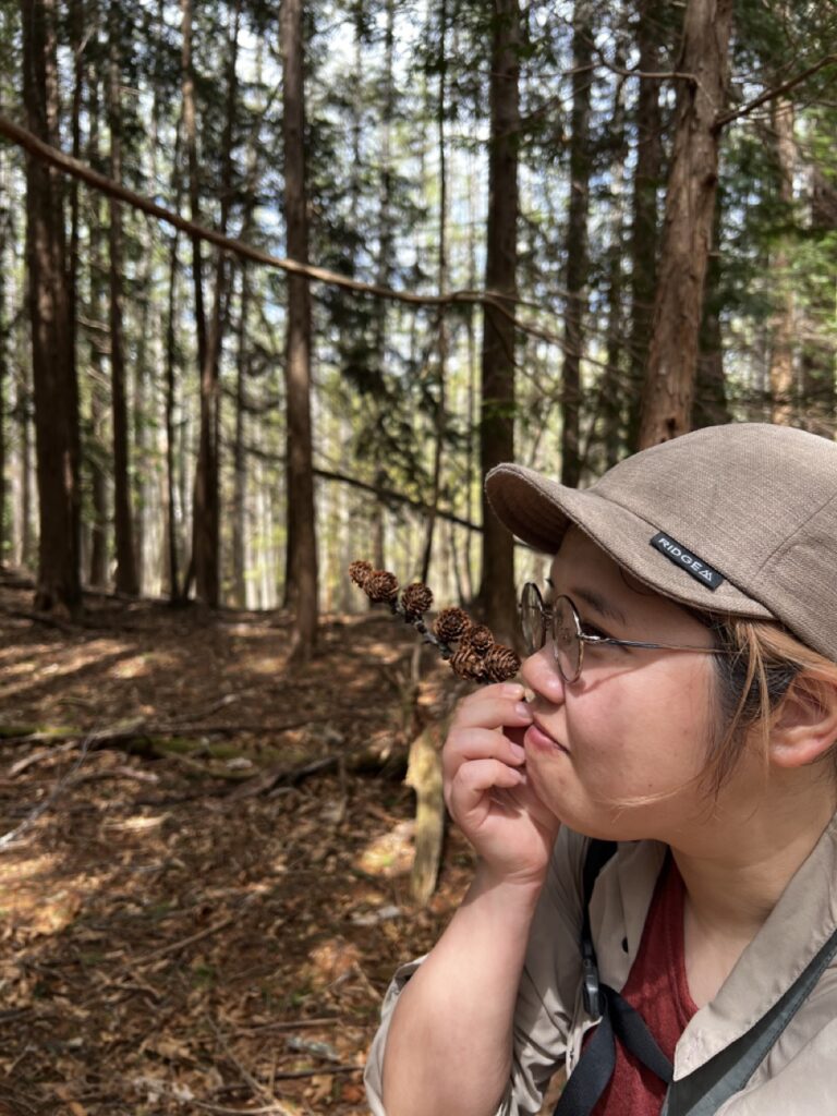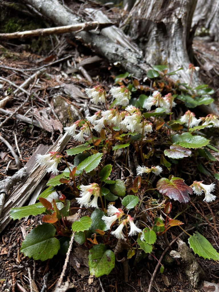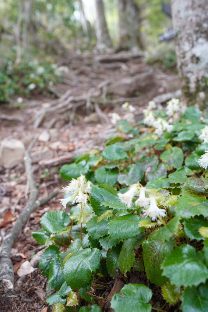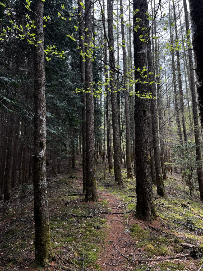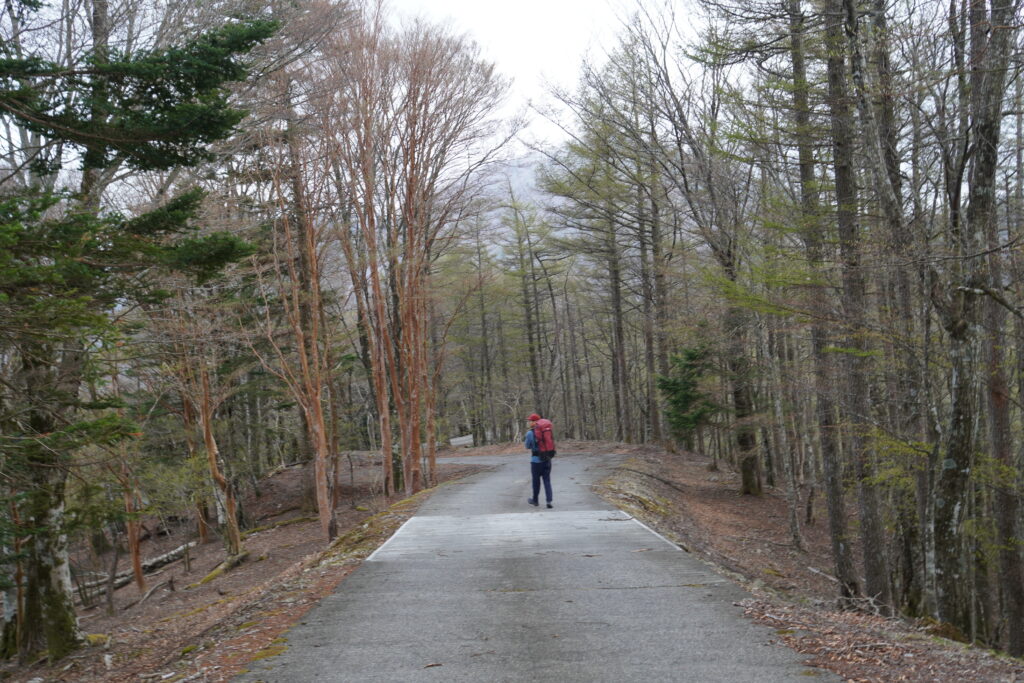 最後のピークに思う存分浸って下山を開始した。標高を下げるにつれて気温が上がり、さっきは葉っぱだけだったイワカガミは花を咲かせていた。沢の音が聞こえてくると、あたりは植林された林になり徐々に生活の気配が濃くなっていく。終盤のつづら折れは落ち葉が凄く、考え事をしながら歩いていたら尻もちを着いた…