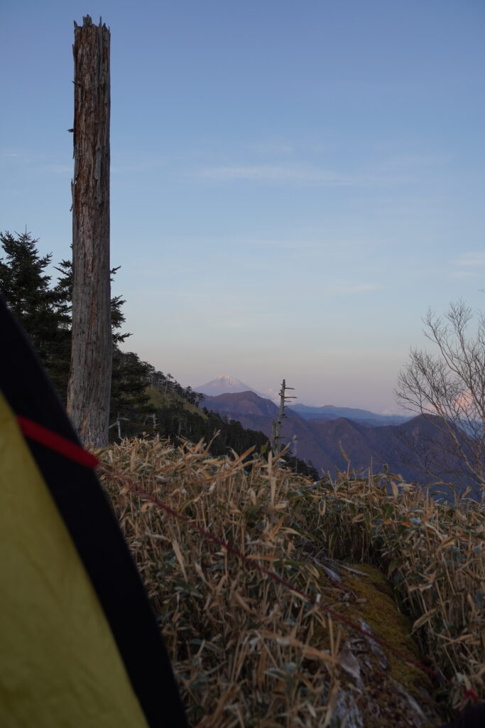 翌朝は0℃前後まで冷え込んだ。今回の縦走の寝具はENLIGHTENED EQUIPMENTの10℃対応のダウンキルトとSTATICのADRIFT Ti SLEEPING BAGの組み合わせ。足が寒くて何度か起きたが概ねよく眠れた。4:00に起床してアルファ化米をスープで流し込み5:30に出発した。