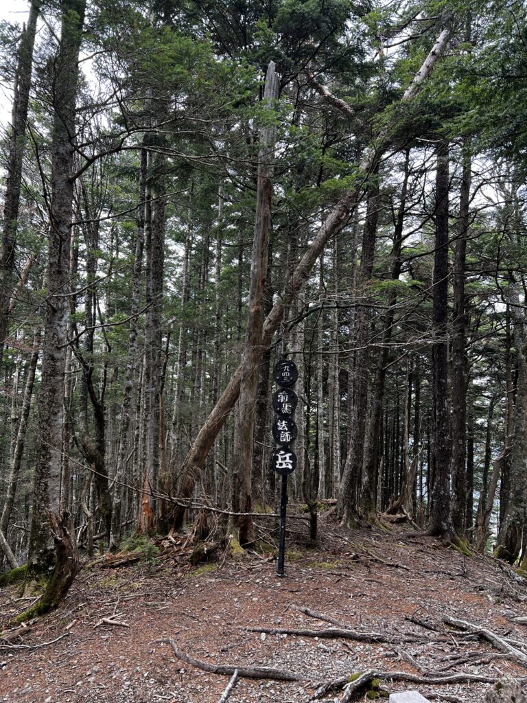 休まずじっくりと前黒法師岳を登りきり、山頂の丸太に腰を下ろして一息ついた。森が広がり眺望が全く無いピークだが、今はそれが心地良く、とても良い山だと感じた。歩いてきた過程によってその山の感じ方や自分の中での価値観が変わるのがまた面白い。これだから縦走はやめられないのだ。