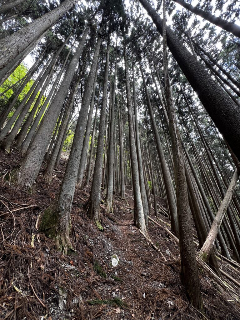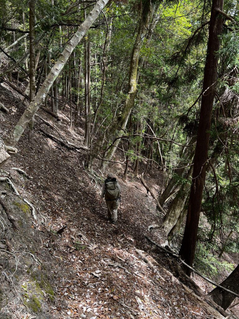 ヘリポートからは林道跡をしばらく進む。山犬段然り、このエリアには山奥にもかかわらずあちこちに林道が存在する。秘境のような山奥のすぐそばに人の手が入った跡があり、人々の営みの歴史を窺わせる。