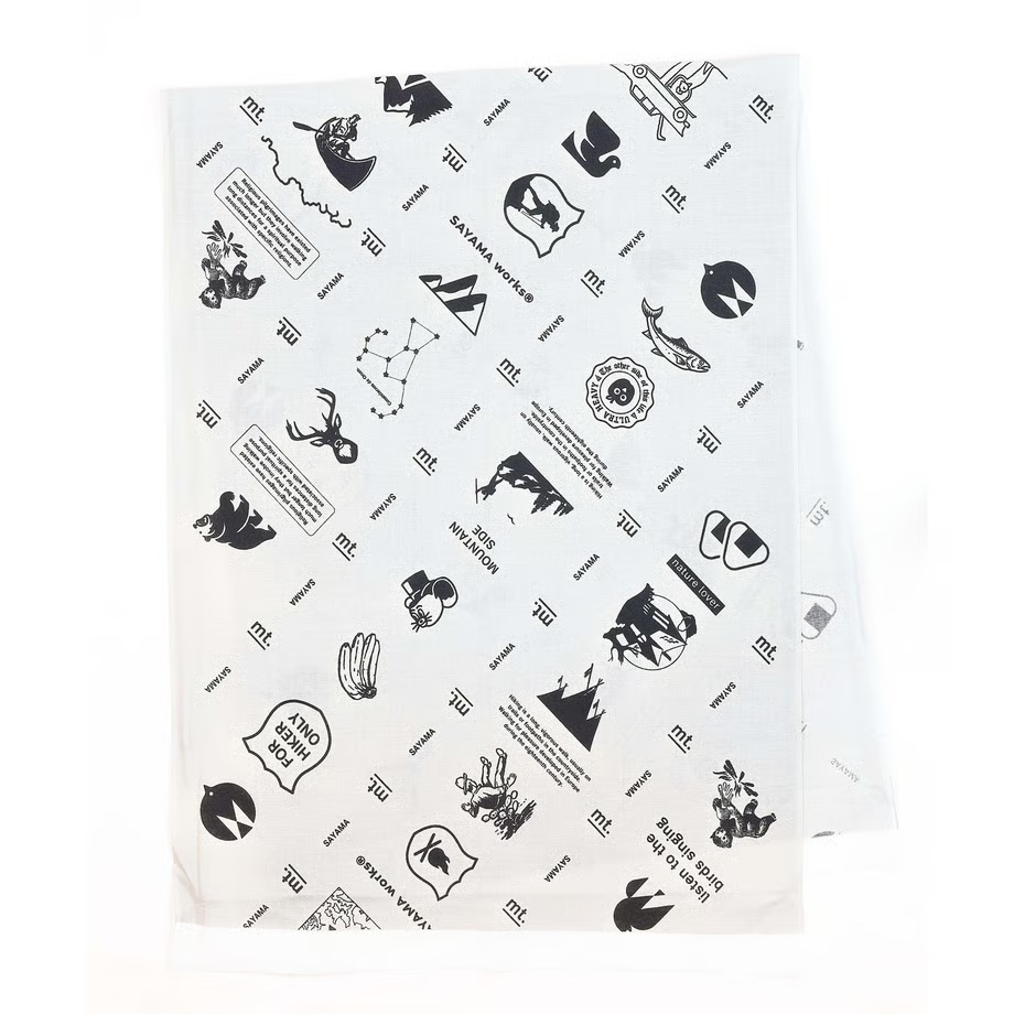 吸湿速乾性に優れた綿100%の国産手ぬぐい。 ジェリー鵜飼氏デザインのSAYAMA worksの総柄デザインを、日本の手ぬぐいメーカーとして名高い、「かまわぬ」により捺染製法でプリント。