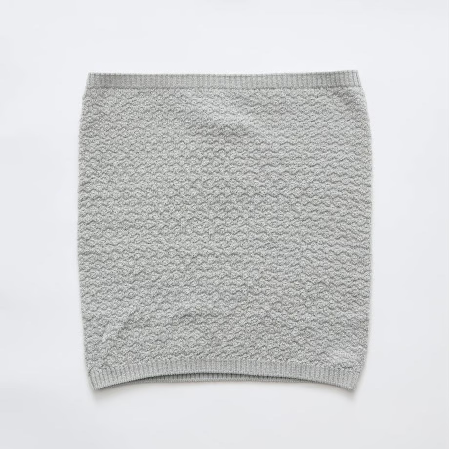 スーパーエクストラファインメリノウールとBRING Material™の再生ポリエステルを70:30の割合で配合したニットの腹巻き。よく伸びて締めつけ感なく着用できます。