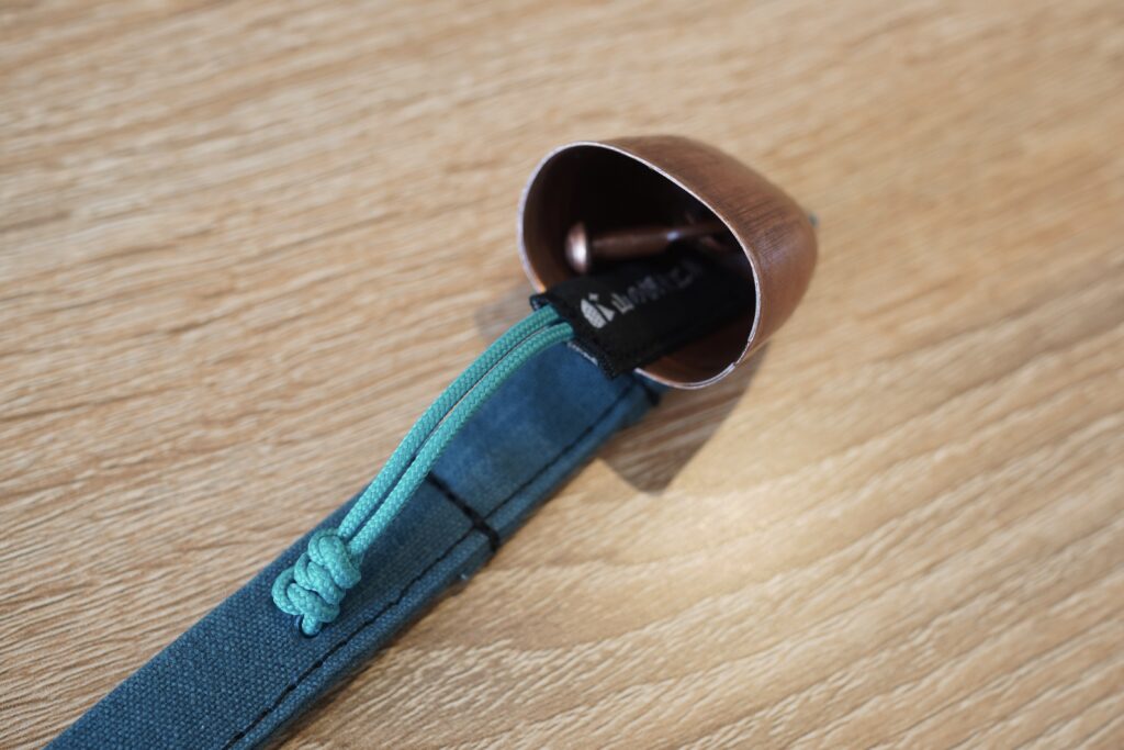 ストラップはループになっており、親指をひっかけて手に持ちながら行動する前提でデザインされています。