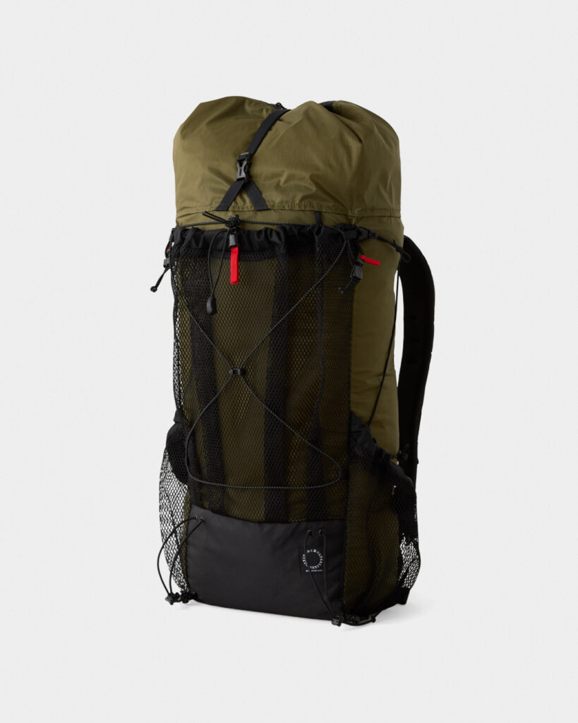 ファストハイクやロングトレイル向けのバックパックです。フロントがメッシュになったことで、より素早く欲しいものを出し入れできます。メッシュポケットにはレインウェアやシェルターなど軽くて薄いものを入れておくのがオススメ。メッシュポケットは便利なのでつい物を入れすぎてしまいますが、メインにある程度中身を入れておかないと背負いづらくなりますので要注意です。