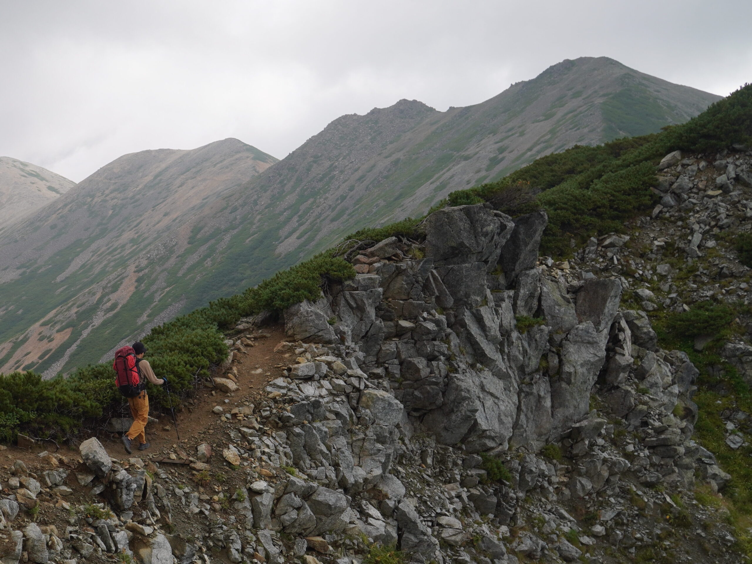 普段はMINIを使っていますが、行動時間の長くなる夏場の縦走ではMINI2を使いたくなります。夏場であれば、メッシュポケットに入れたものが雨で濡れても乾かせばいいので、気兼ね無く背負っていけます。